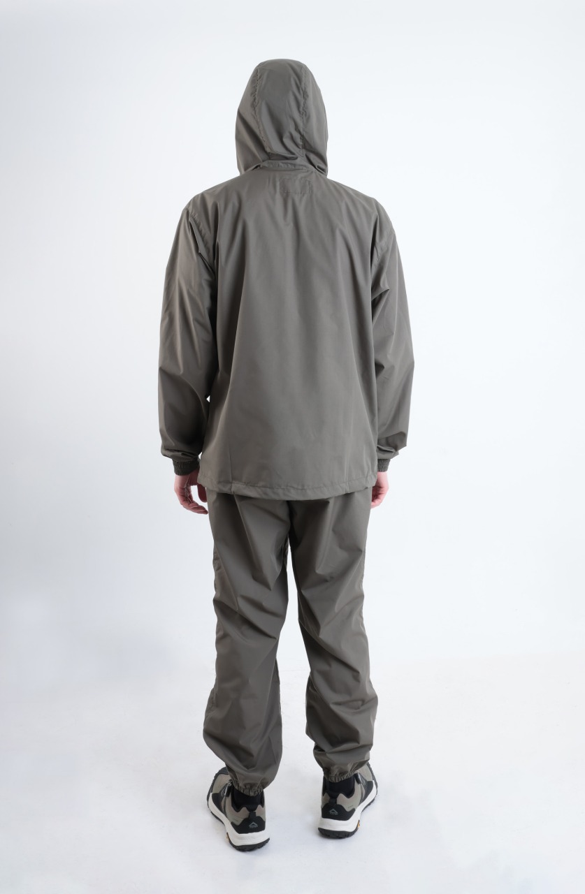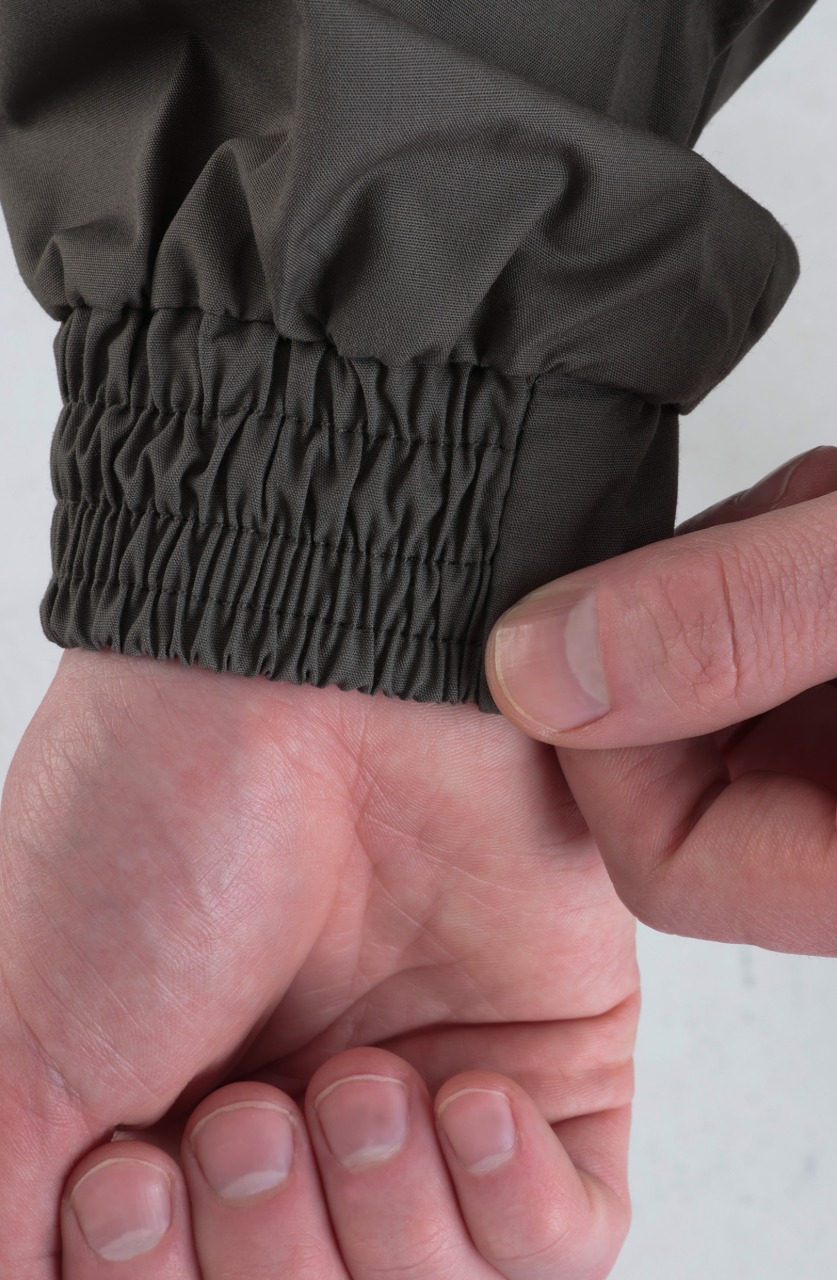 Удлиненная куртка по низу регулируется утяжками. Рукава куртки с манжетами, препятствуют проникновению насекомых. Капюшон регулируется по овалу лица шнуром. Антимоскитная сетка пристегивается к капюшону  на молнию и легко убирается в небольшой карман на груди. Широкие листочки четырех вместительных карманов защитят от попадания лесного сора.  Внутренний влагозащитный карман для ценных вещей и документов.